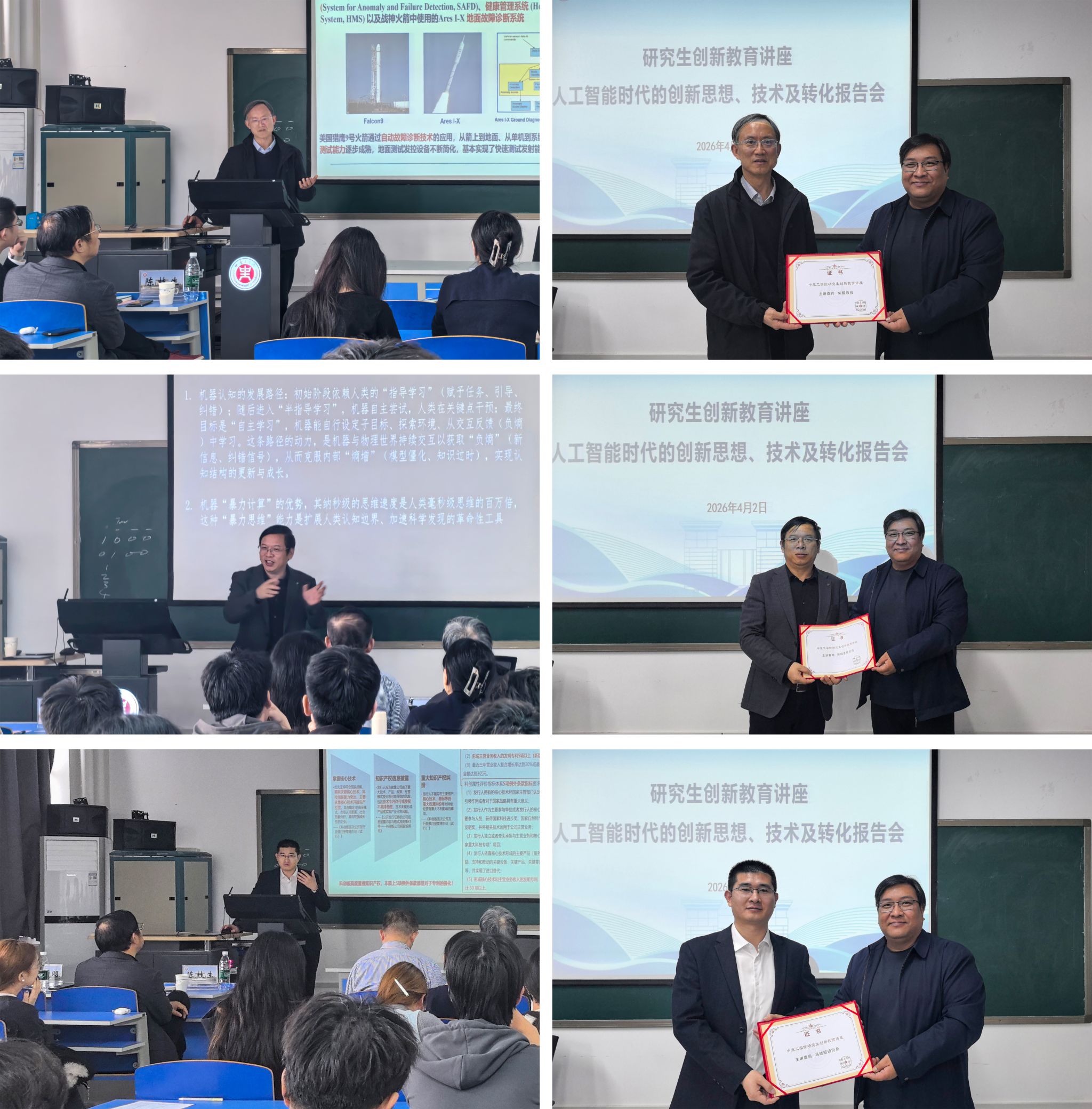 在自由交流环节,参会师生与专家们进行了深入的互动交流,就各自关心的问题进行了踊跃提问与详细解答,现场气氛热烈而融洽。讲座结束后,伟德国际victor·1946源自直属党支部副书记张志鹏代表学校向三位专家颁发“伟的国际1946bv研究生创新教育讲座主讲嘉宾”证书,再次对与会专家表达诚挚的感谢。